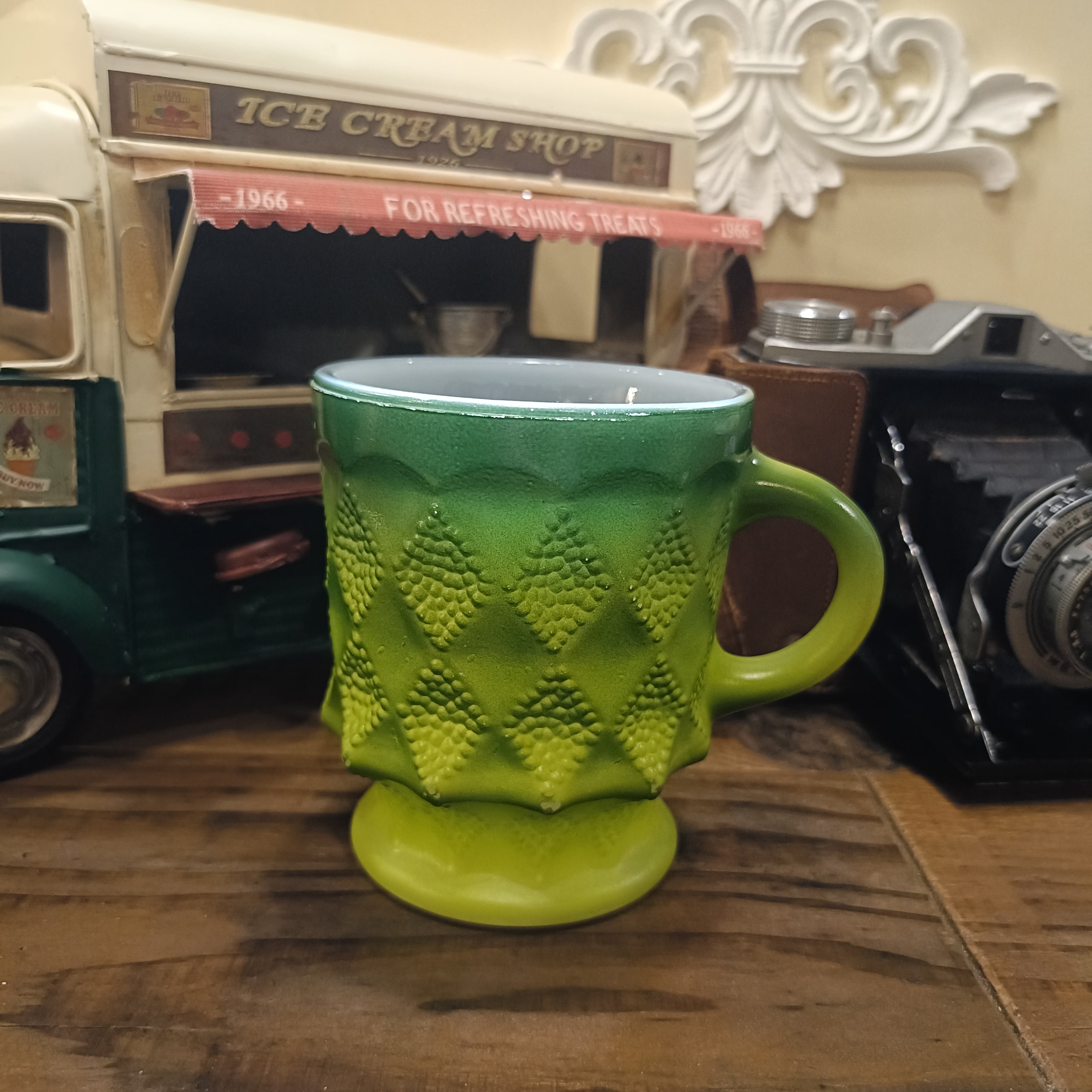 そして1942年にFire-Kingブランドが誕生し、ミルクガラスを中心としたFire-Kingシリーズとカラフルなガラス製品を展開していきます。
